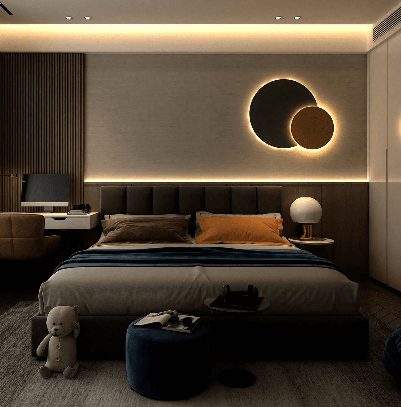 多元隱形燈槽實現牆頂一體,間接反射洗牆美學,打造高效美觀照明 。