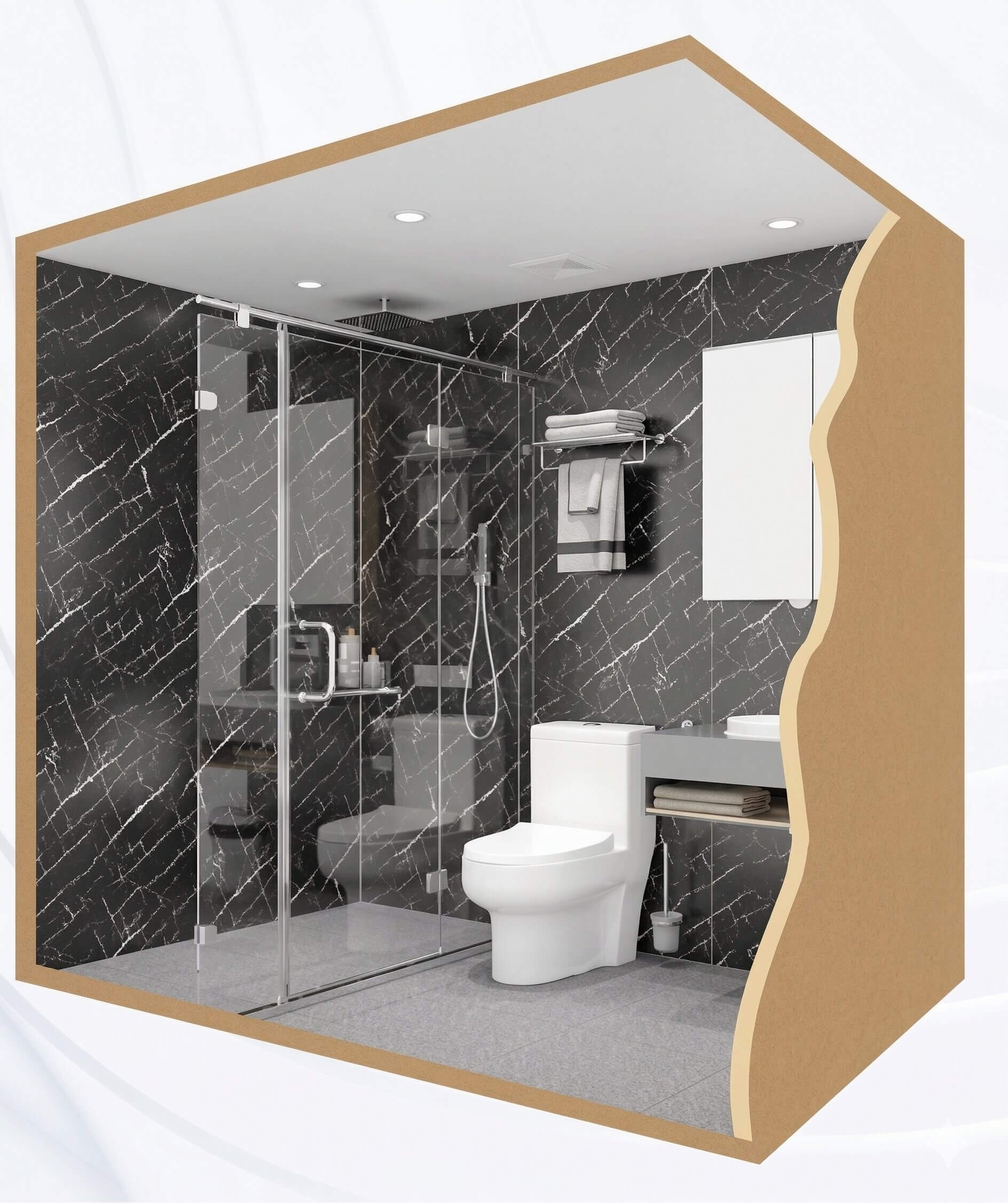 實現 100% 物理防水與極速交付,打造高品質、長效耐用的現代化裝配式衛浴方案。