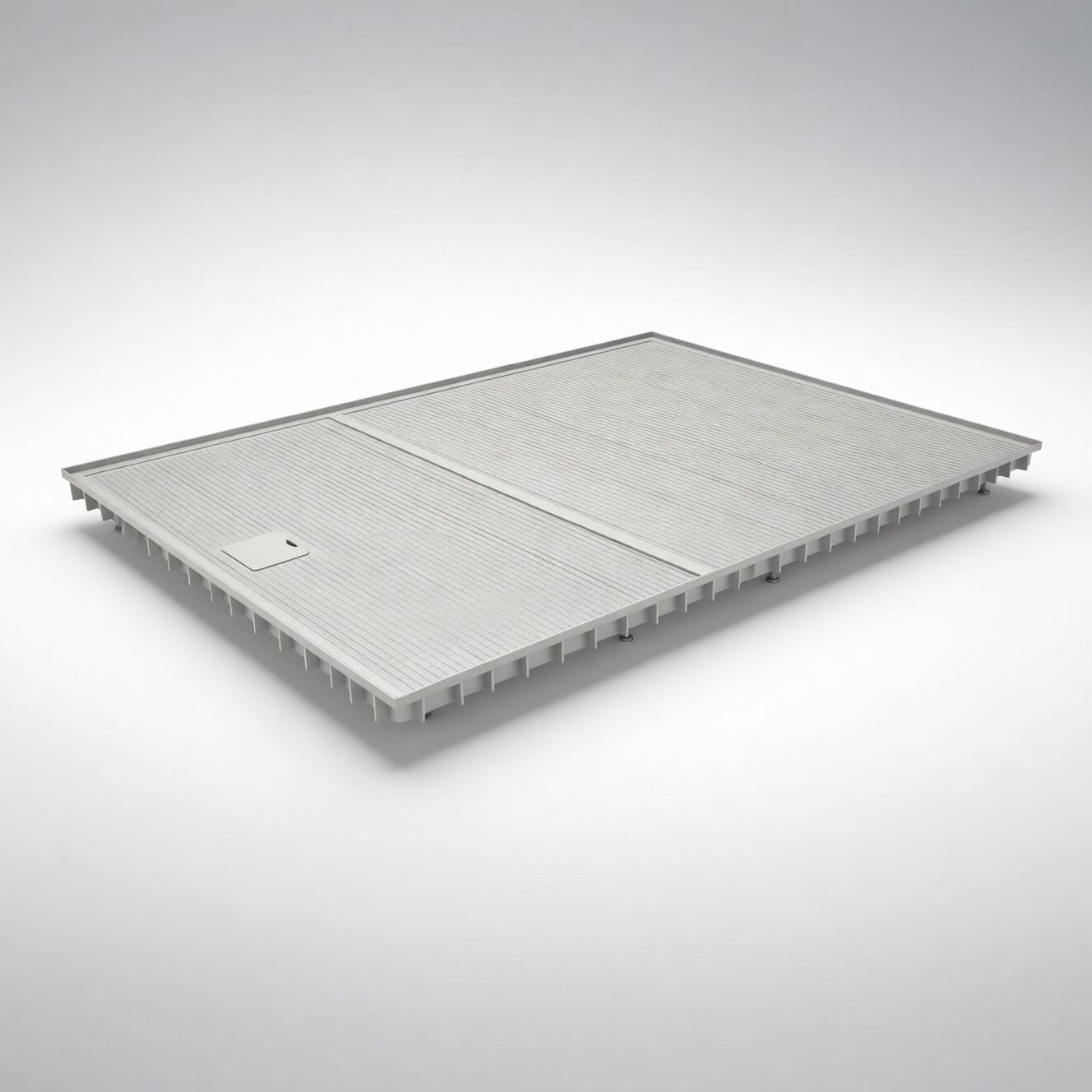 採用納米級陶瓷塗層與一體成型高翻邊底盤,結合 1.4% 科學洩水坡度,實現 100% 物理防漏並有效抑制細菌滋生。